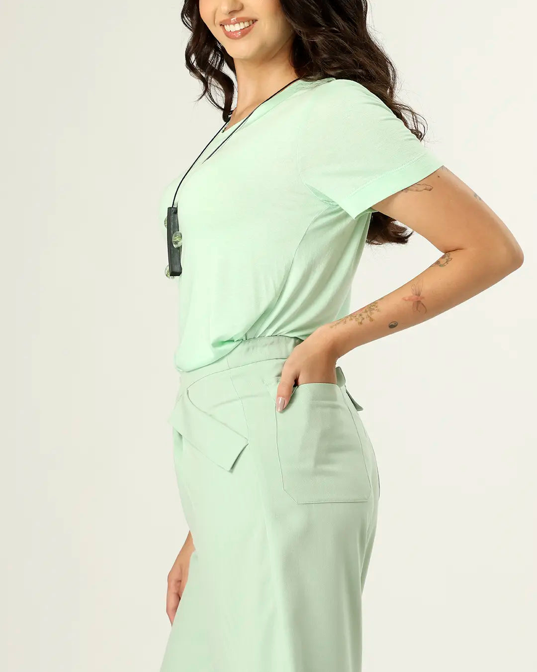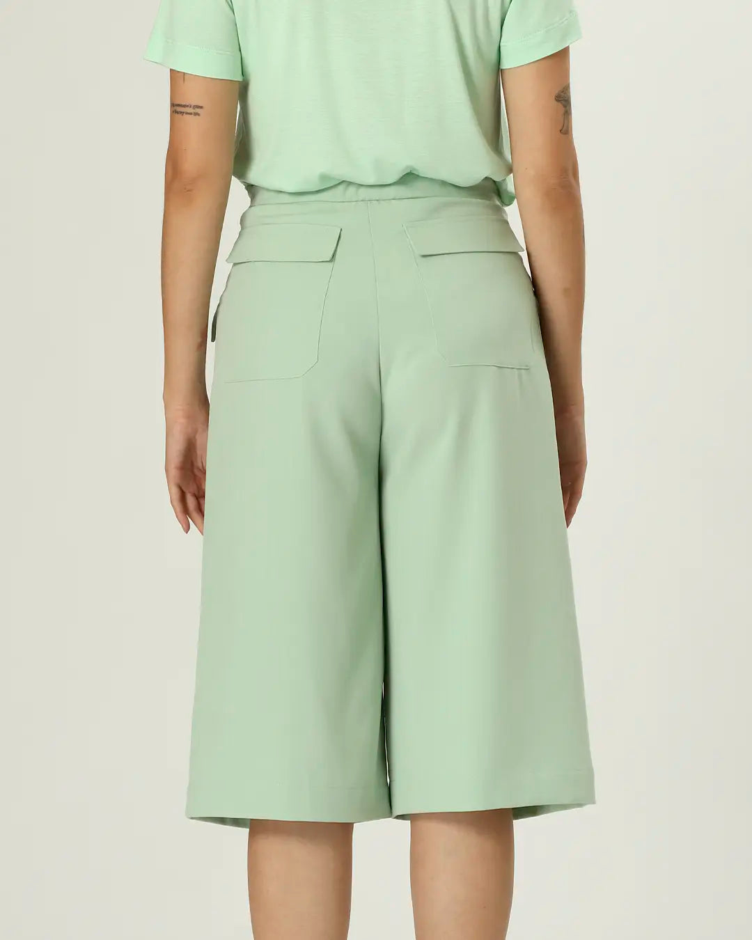 Conforto e estilo em uma única peça! Essa bermuda pantalona, possui modelagem ampla e caimento fluido, garantindo movimento e leveza ao vestir. Os bolsos frontais com design diferenciado trazem um toque moderno e sofisticado, valorizando ainda mais o visual. Versátil, pode ser combinada tanto em produções casuais quanto em looks mais elegantes.