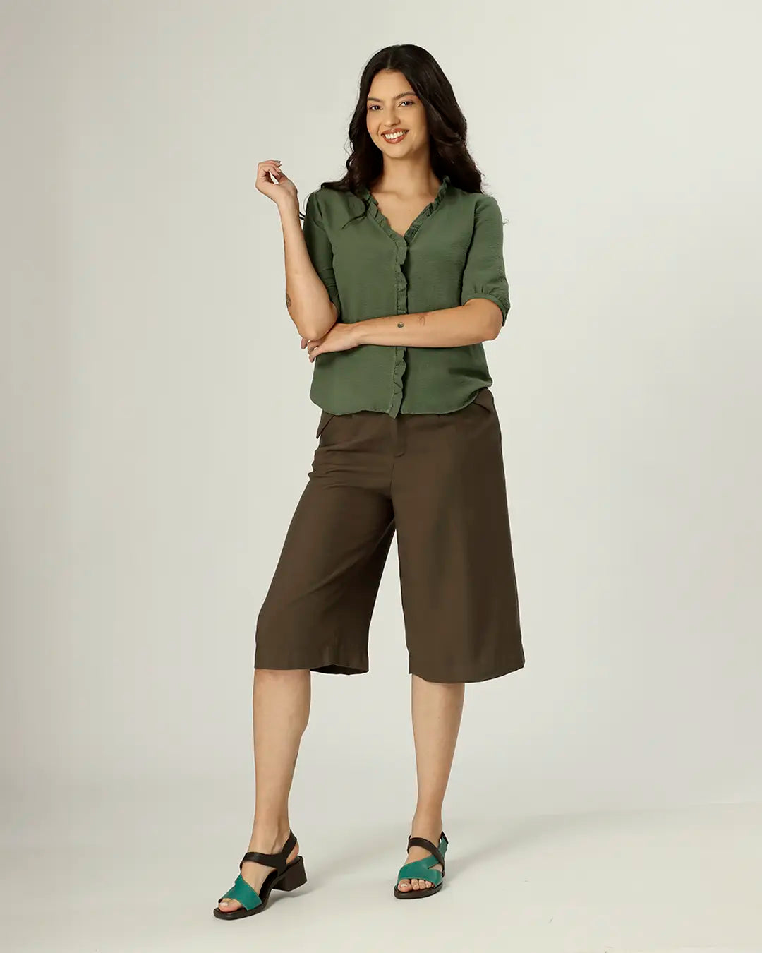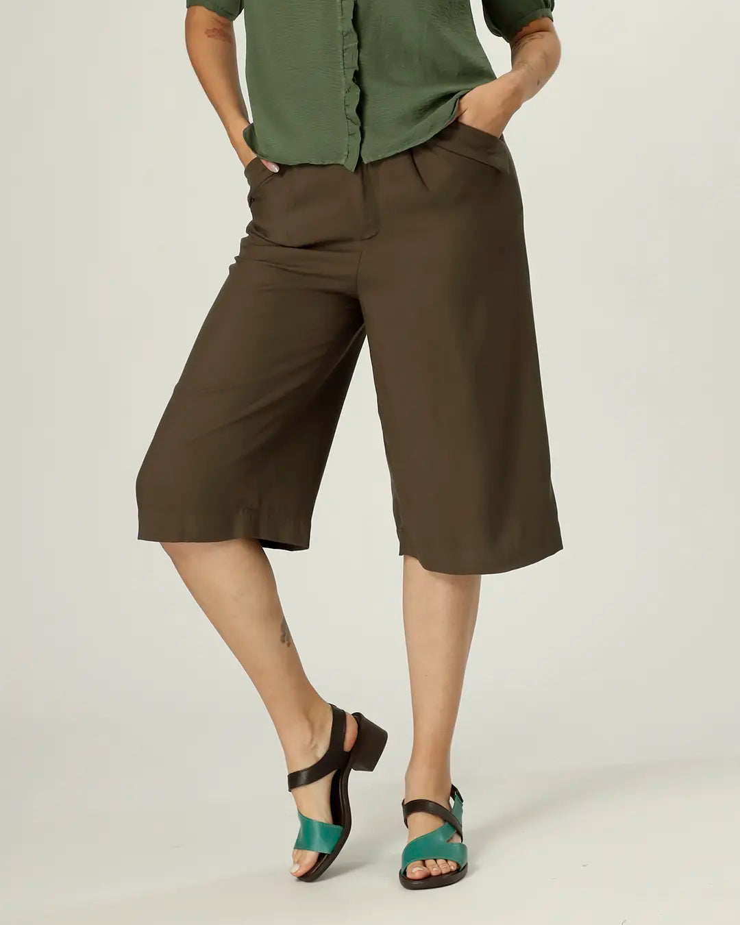 Conforto e estilo em uma única peça! Essa bermuda pantalona, possui modelagem ampla e caimento fluido, garantindo movimento e leveza ao vestir. Os bolsos frontais com design diferenciado trazem um toque moderno e sofisticado, valorizando ainda mais o visual. Versátil, pode ser combinada tanto em produções casuais quanto em looks mais elegantes.