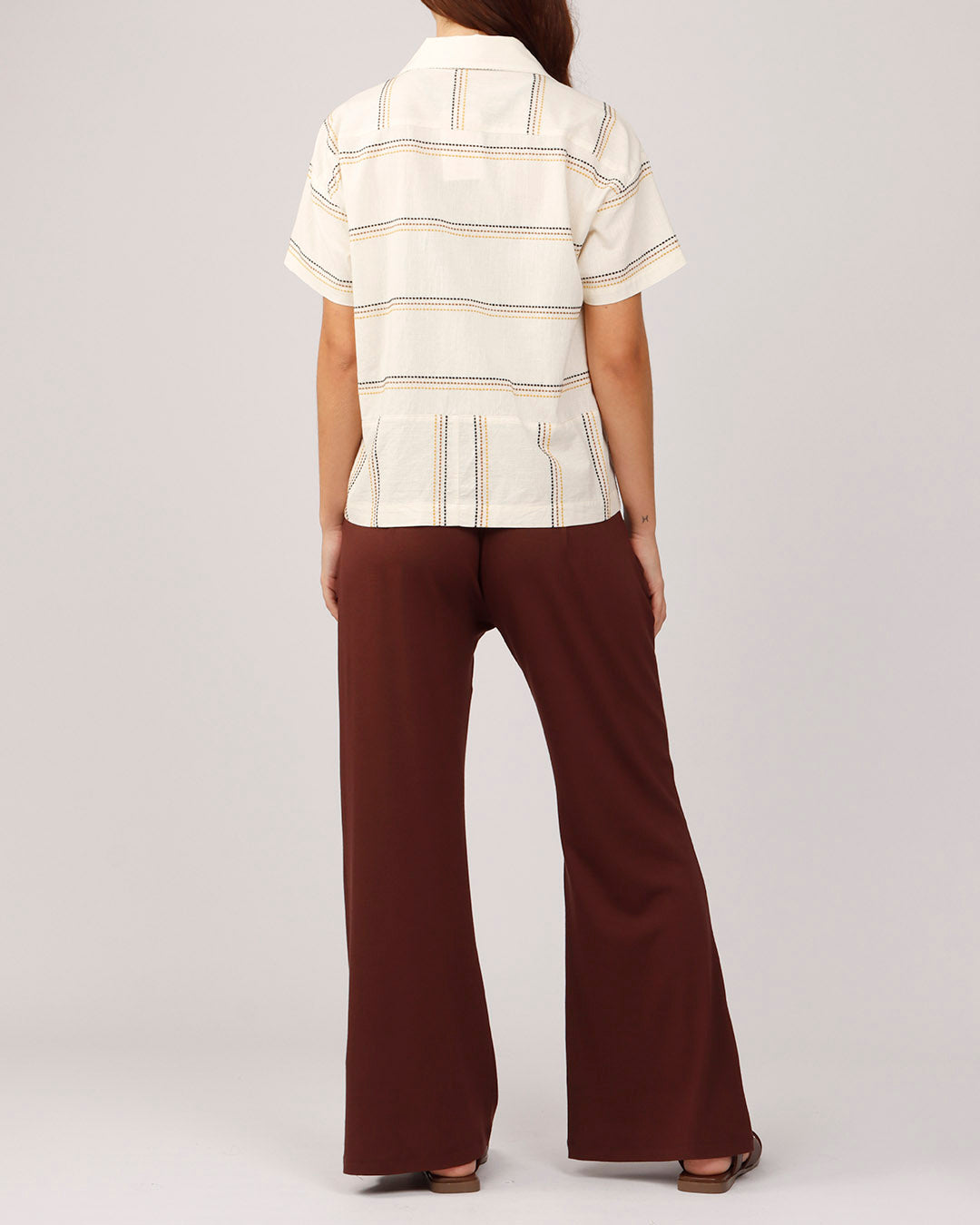 O diferencial fica por conta do bolso faca, com um detalhe de pregas ou drapeado sutil na lateral, adicionando um toque moderno e sofisticado ao design minimalista. Versátil, pode ser combinada com saltos para um visual mais formal ou tênis para um look casual e despojado. Disponível nas cores: marrom, preto e azul marinho.