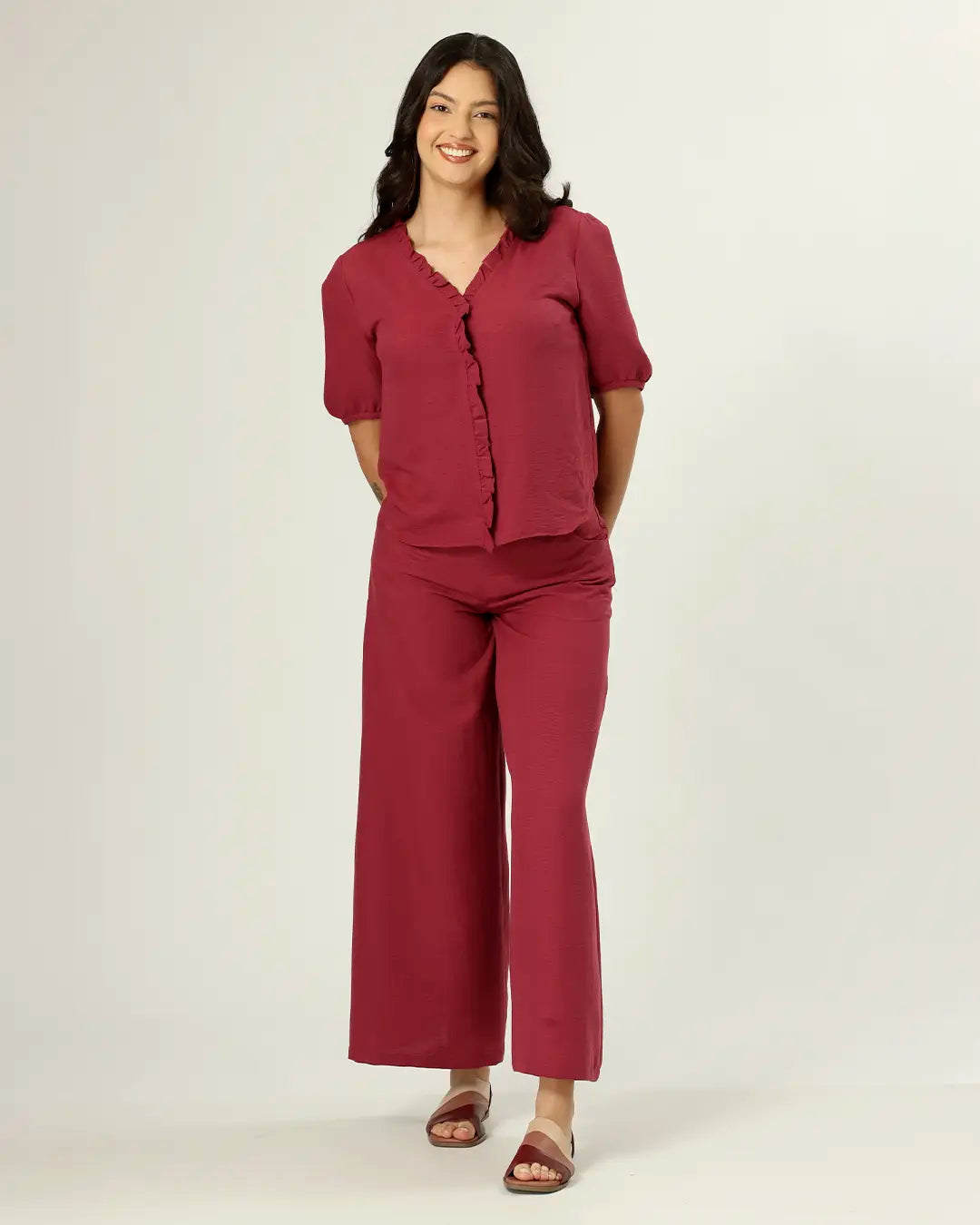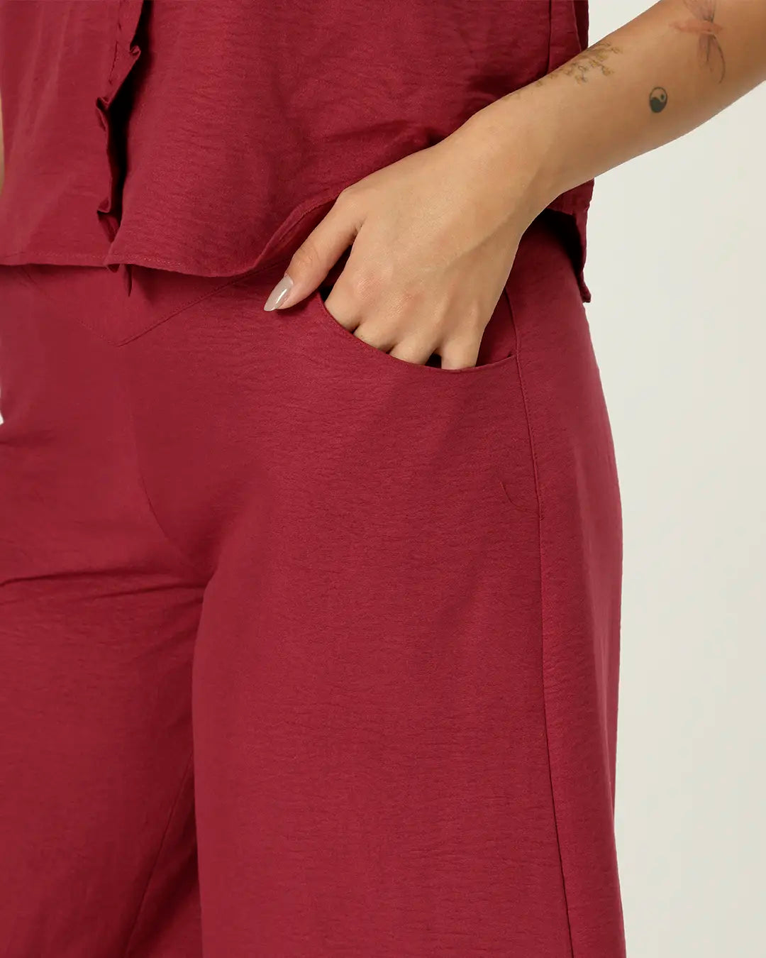 Sucesso absoluto na Bel, essa calça Pantalona está de volta nesta coleção para conquistar ainda mais corações! Ela se destaca pelo caimento maleável e macio, que proporciona conforto e sofisticação. Além disso, o tecido é resistente, prático e não amassa com facilidade, garantindo elegância ao longo do dia. Moderno com bolsos frontais embutidos e cintura levemente estruturada, valorizando a silhueta e deixando a peça ainda mais versátil. Disponível em três cores fáceis de combinar: Bege, preto e bordô.