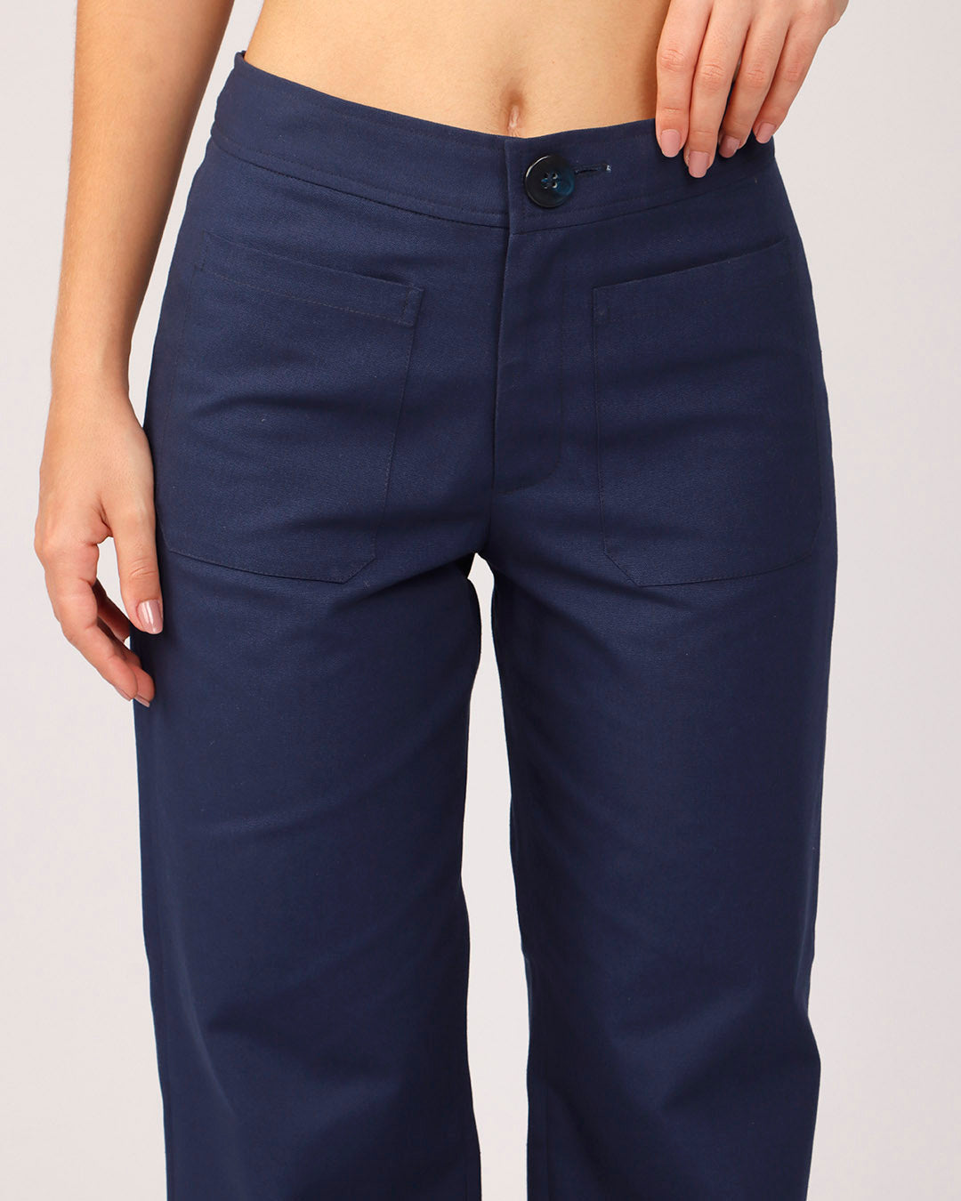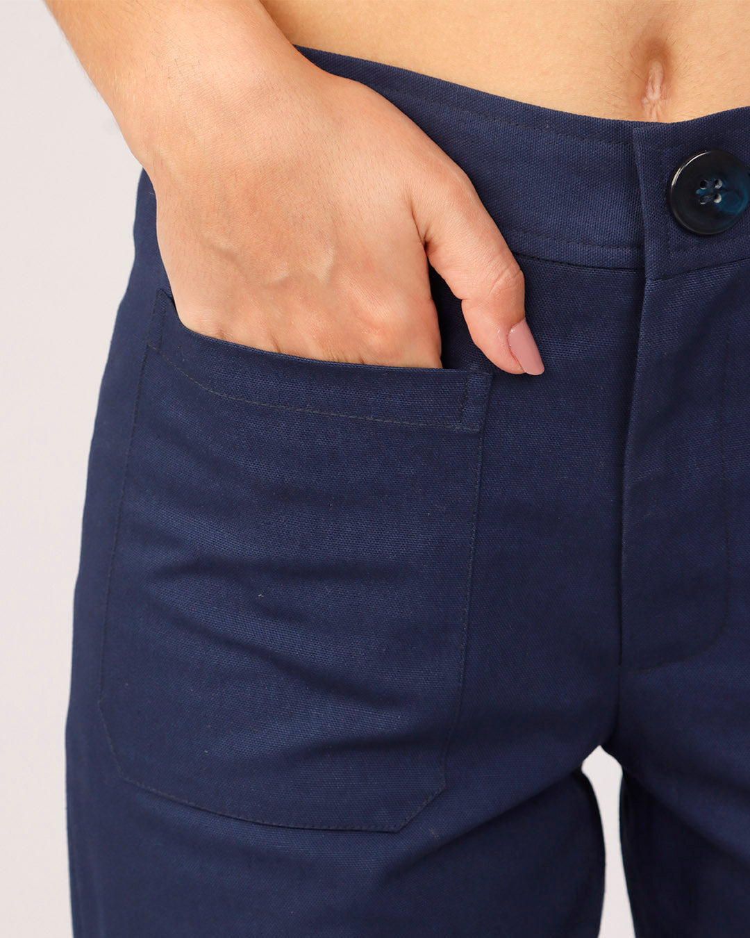 Aposte no conforto e na praticidade com esta calça feminina feita em algodão. Com modelagem reta e caimento leve, ela oferece liberdade de movimento e um toque macio ao vestir. O cós conta com fechamento por botão e zíper, garantindo ajuste seguro. Na parte frontal, possui bolsos discretos que trazem funcionalidade ao dia a dia. Já na parte de trás, apresenta dois bolsos aplicados que adicionam charme ao visual.