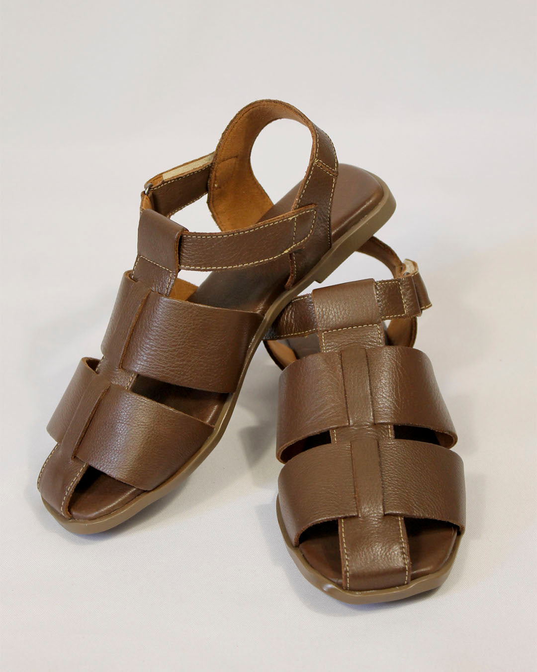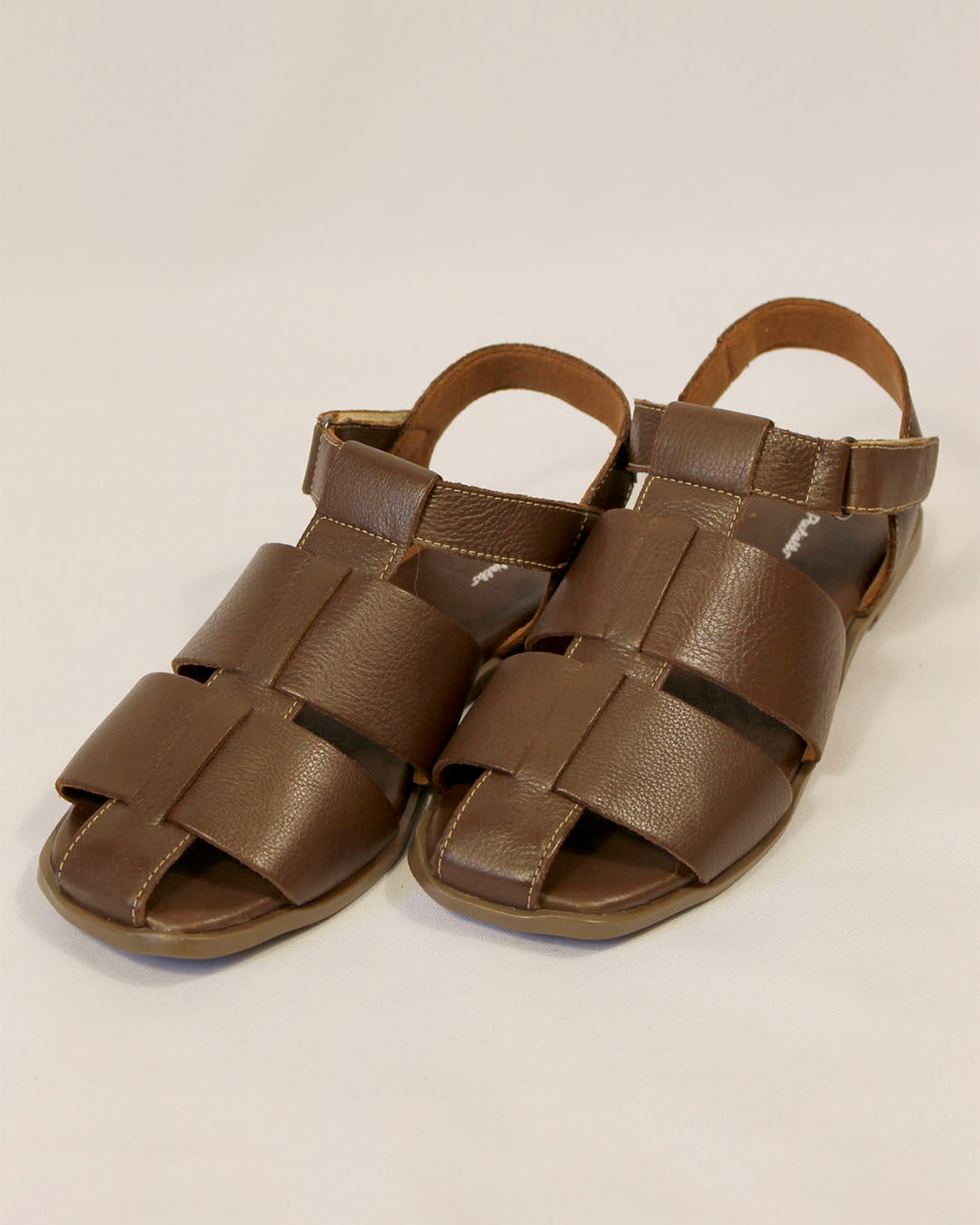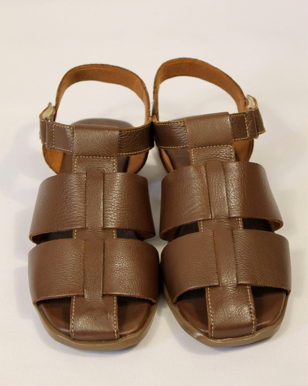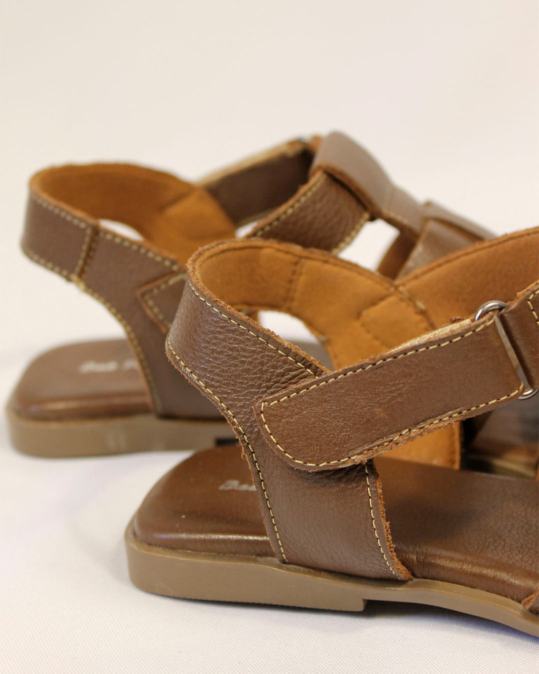 Sandália de couro marrom com tiras geométricas, com design entrelaçado, essa sandália combina elegância e simplicidade em uma peça cheia de identidade. Feita em couro macio na cor marrom, envolve o pé com conforto e segurança, permitindo respirabilidade e leveza no uso diário. O fechamento em velcro garante praticidade, enquanto a palmilha acolchoada proporciona bem-estar a cada passo.