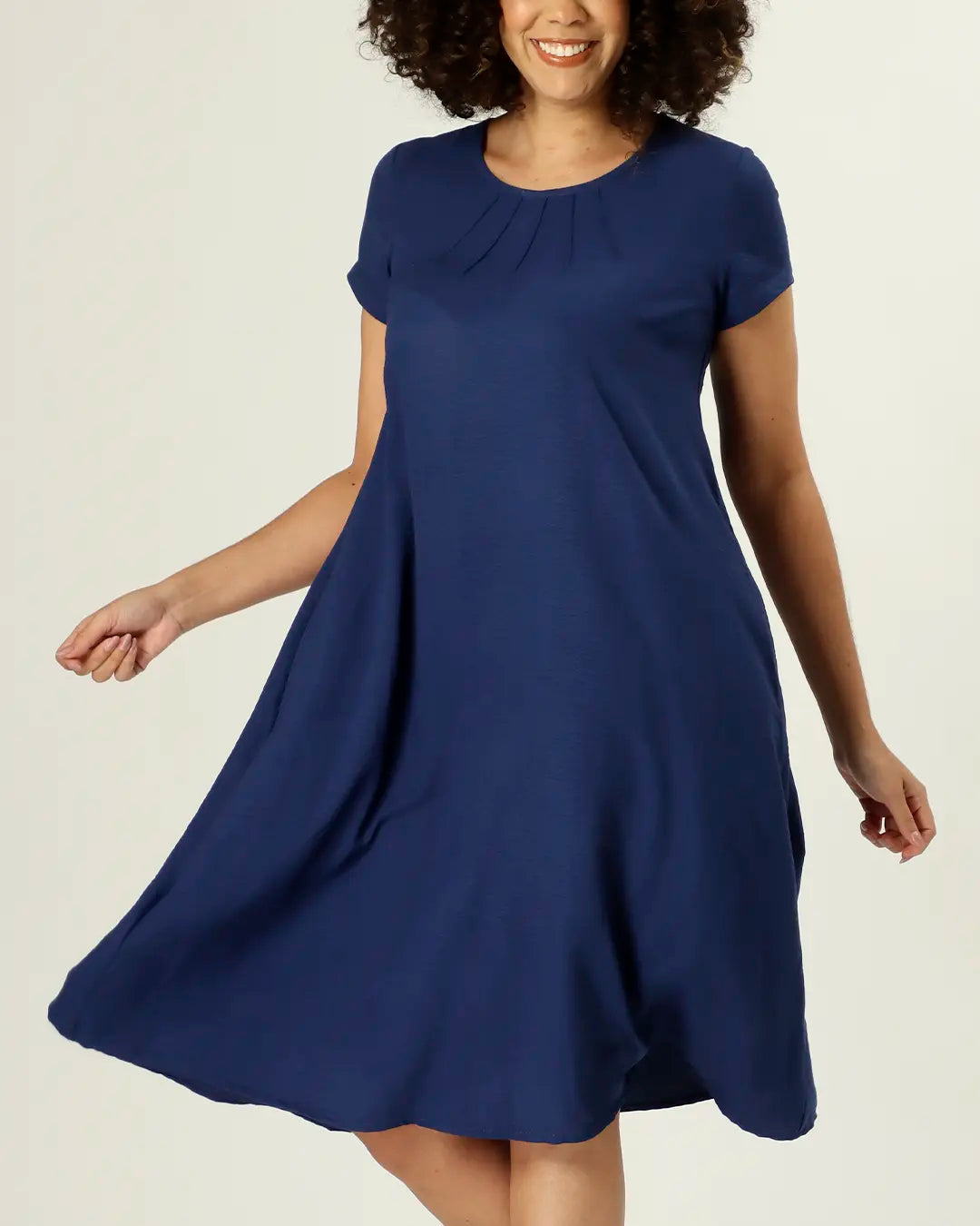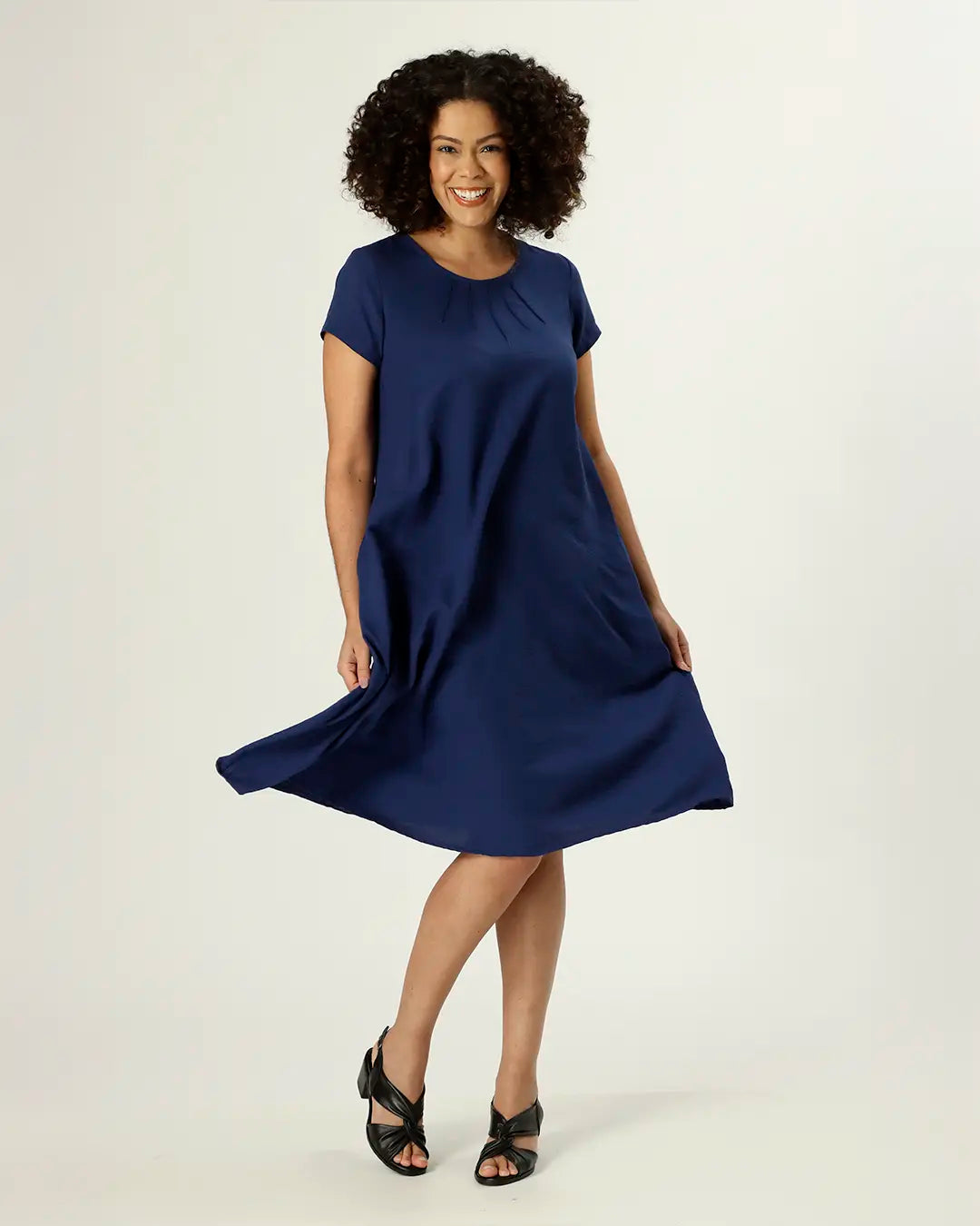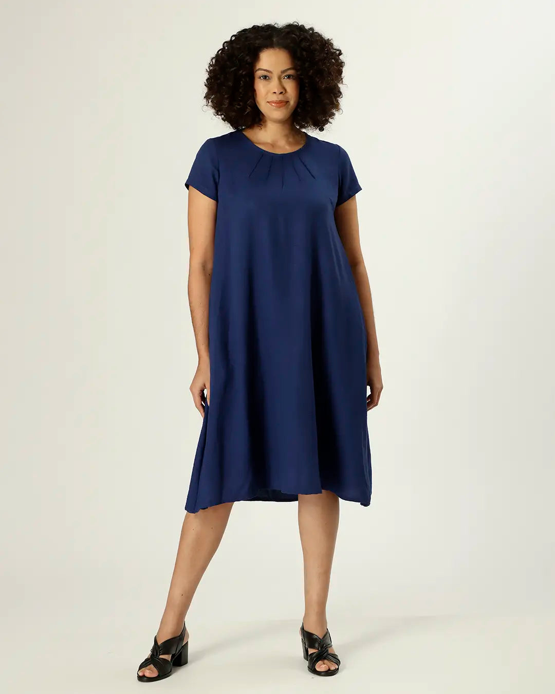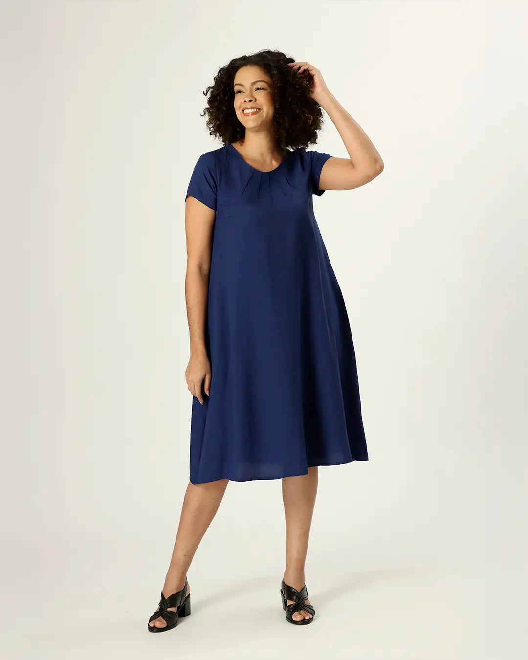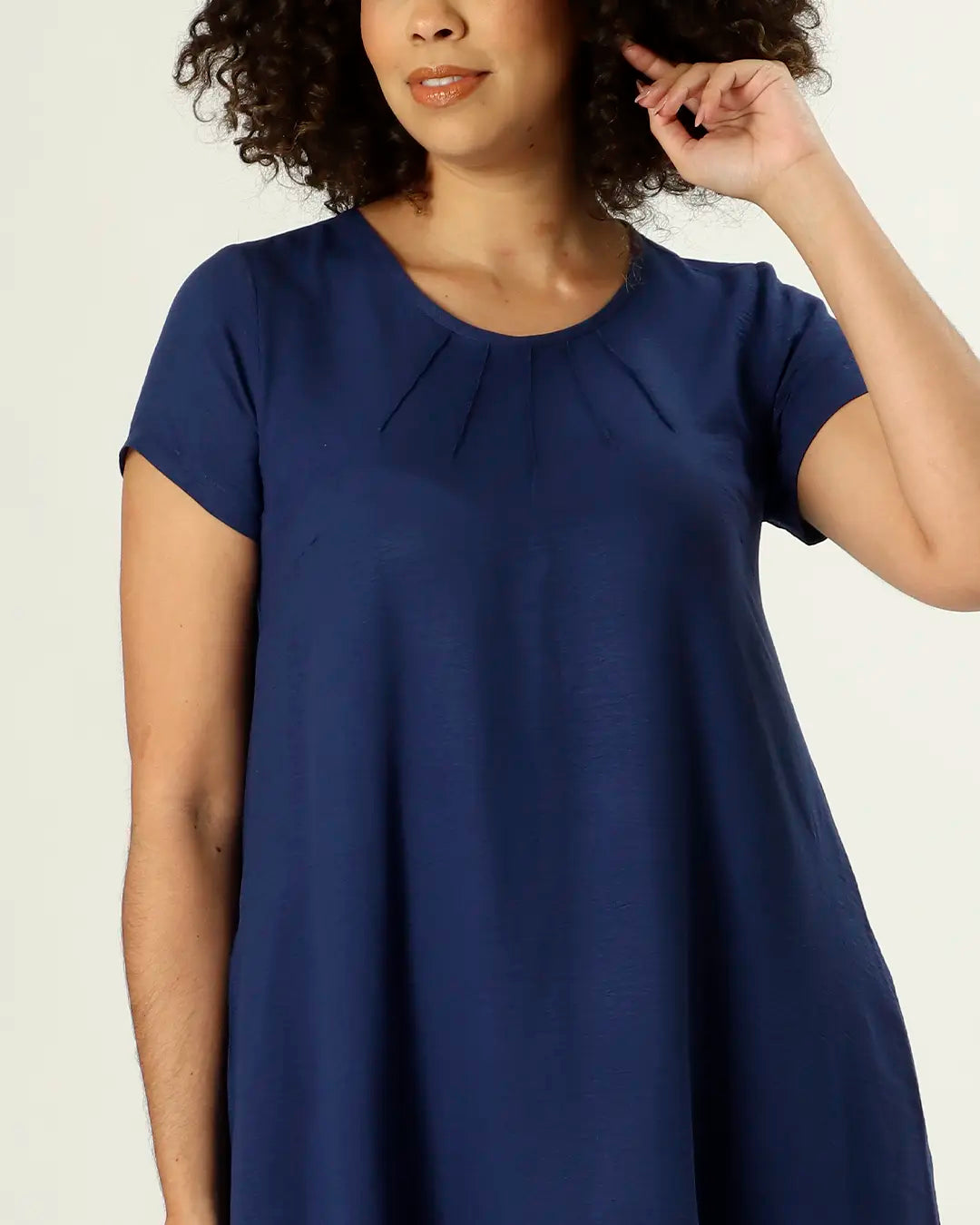 Conforto e leveza em uma peça maleável, esse vestido é confeccionado em tecido texturizado, estilo creponado, não amassa com facilidade e seca rápido, de caimento leve, que proporciona movimento e frescor ao look. Possui modelagem soltinha, mangas curtas e detalhe de pregas sutis no decote redondo,com detalhe assimétrico nas laterais, que cria movimento e alonga a silhueta. Ideal para o dia a dia ou ocasiões especiais. Disponível em três cores: azul, verde e bordô.