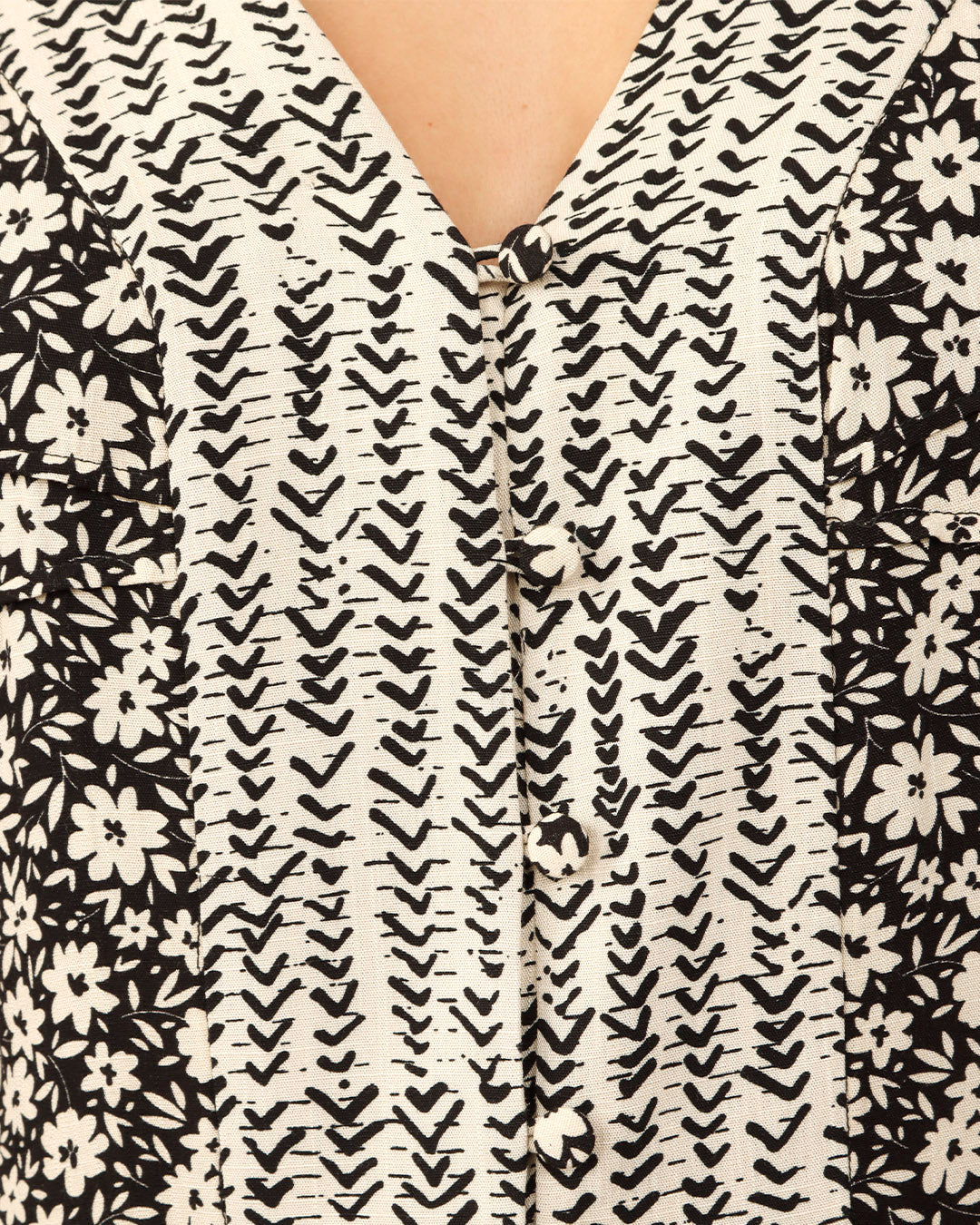 Vestido estampado com floral delicado, confeccionado em tecido leve e super confortável. Possui decote em “V” com detalhe trabalhado em vieses que destacam a região do colo, trazendo um toque artesanal ao visual. As mangas curtas deixam a peça ainda mais fresca para dias quentes.